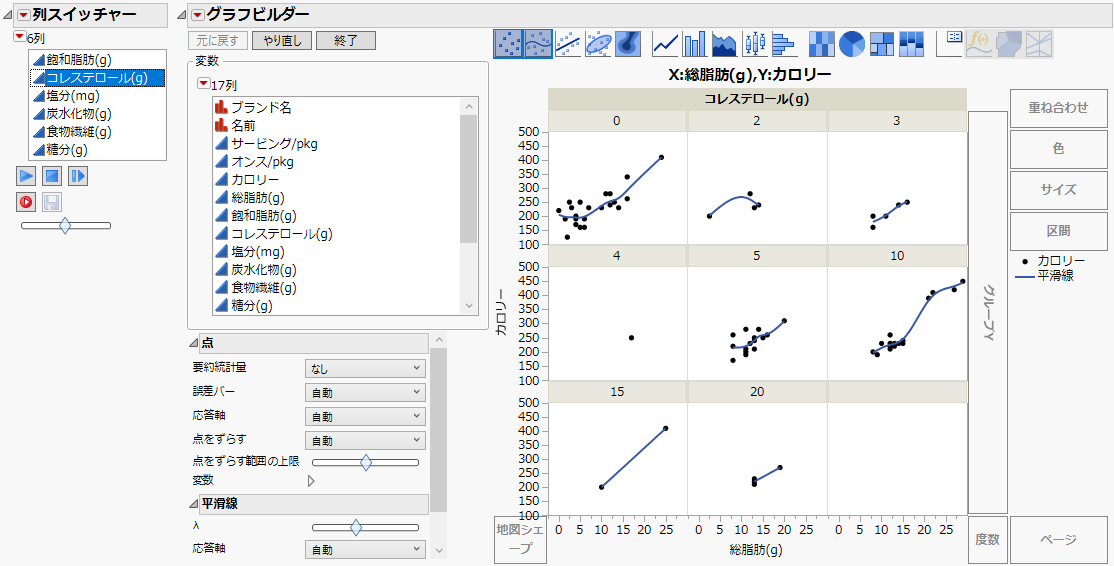 グラフビルダーの横の赤い三角ボタンから、[やり直し]>[列スイッチャー]を選びます。