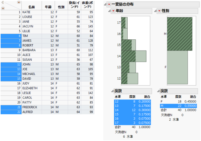 [ヘルプ]>[サンプルデータライブラリ]を選択し、「Big Class.jmp」を開きます。