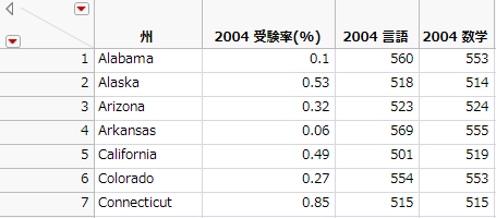 現在のデータテーブルである「SATByYear.jmp」が主テーブルとして選択されています。