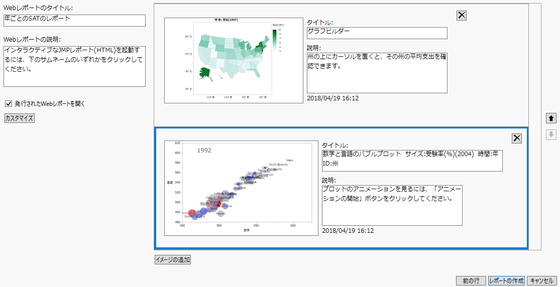 「Webレポートのタイトル」ボックスに「年ごとのSATのレポート」と入力します。