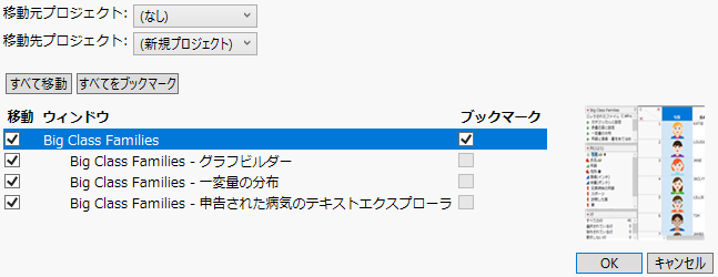 「Big Class Families.jmp」の[移動]チェックボックスをオンにします。