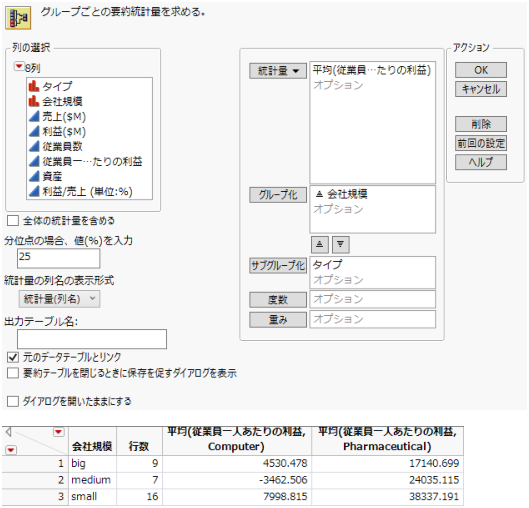 この章では、平均や中央値、標準偏差、最小値と最大値などの要約統計量をまとめた要約データテーブルの作成方法について説明します。