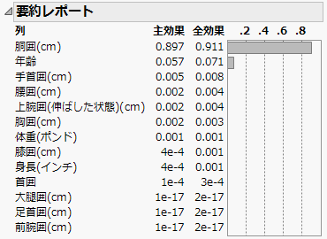 「要約レポート」を見ると、「体脂肪率」の最も重要な説明変数は「胴囲(cm)」であることがわかります。