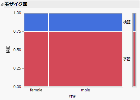データテーブルに「検証」列が追加されます。モザイク図を作成すると、検証セットと学習セットの分布を確認できます。