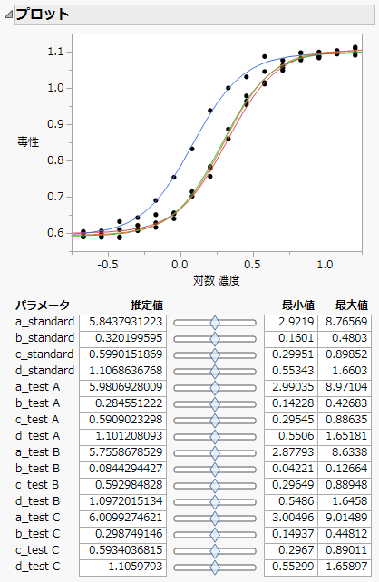 プロットの下に、パラメータの限界と推定値を調整するオプションが表示されます。