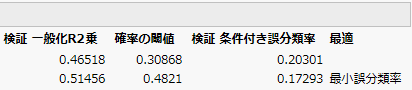 「モデルの要約」レポートを見ると、学習セットと検証セットの誤分類率は非常に小さいことがわかります。これは、モデルがデータにオーバーフィットしていないことを示唆しています。混同行列は、モデルによって誤分類されたオブザベーションのタイプに関する情報を提供します。混同行列の左上隅を見ると、ほとんどの場合(学習で92%、検証で89.5%)において、モデルが「Low」を正しく分類していることがわかります。しかし、「High」が正しく分類されている率はそれよりも低くなっています(学習で57.8%、検証で65.8%)。そのため、誤分類の大部分は誤って「Low」と分類された「High」です。