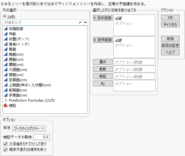 図6.6 「Body Fat.jmp」を使ったときの「ブースティングツリー」起動ウィンドウ
