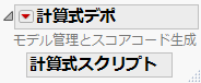 予測式を計算式デポに発行できないプラットフォームでは、まず、予測式をデータテーブルに保存します。そして、計算式デポにて[列の計算式から追加]を選択します。この操作により、データテーブルから予測式を計算式デポに追加できます。ただし、このようなモデルについては、スコアを計算するコードが完全には動作しない場合があります。スコアリングコードの詳細については、「計算式デポ」でスコア計算のコードを生成を参照してください。
