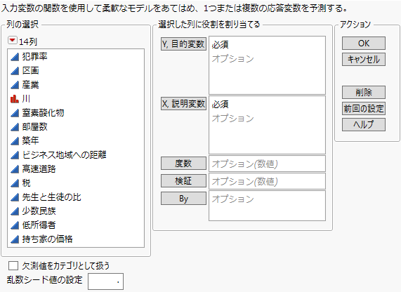 モデルの検証に使う手法を選択します。検証法を参照してください。
