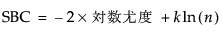 SBCの値が小さいほど、モデルはよくあてはまっています。Schwarzのベイズ規準はベイズ情報量規準に相当します。SBCは次式で計算されます。