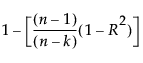 自由度調整済みR2乗は次式で計算されます。