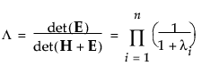 以下において、Eは残差交差積行列、Hはモデル交差積行列です。Eの対角要素は、各変数の残差平方和です。Hの対角要素は、各変数のモデル平方和です。判別分析に関する文献では、Eは、「within」の頭文字を取ってWと呼ばれることもあります。