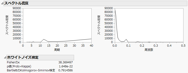図17.15 「スペクトル密度」レポートと「ホワイトノイズ検定」レポート