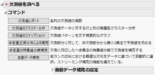 自動データ補完の設定(起動ウィンドウに指定した列に、名義尺度や順序尺度のものがある場合は使用できません。)