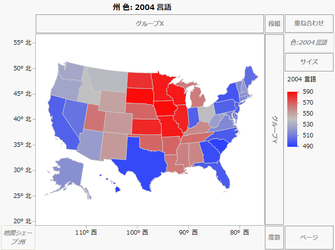図12.7 「SAT.jmp」ファイルの「2004 言語」列を「色」ゾーンにドロップしたところ