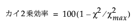 カイ2乗効率は、バランスの取れた計画(釣合い型計画)であるとき、つまりχ2が0であるときに100%となります。