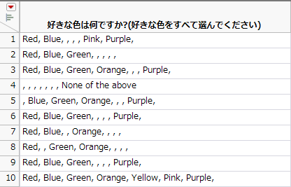 ヒント: 該当の列に含まれているデータが多重応答データであることを明示的に指定するには、「多重応答」列プロパティを指定してください。『JMPの使用法』のプラットフォームでの列の使用を制御するプロパティを参照してください。