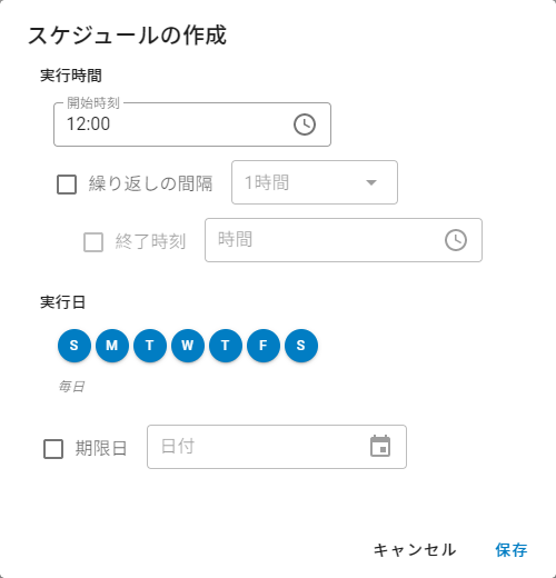 日付範囲: [すべての日付]をクリックして日付を選択するか、[カスタム]をクリックして日付範囲を入力します。