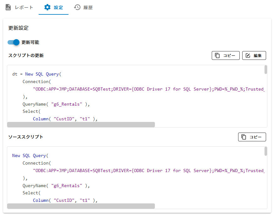 外部データベースから読み込む、ログイン情報を必要とするデータをリフレッシュしたい場合は、JMP Live内でそれらのログイン情報を安全に保存できます。