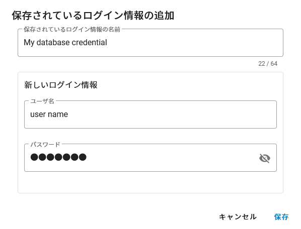 外部データベースから読み込む、ログイン情報を必要とするデータをリフレッシュしたい場合は、JMP Live内でそれらのログイン情報を安全に保存できます。
