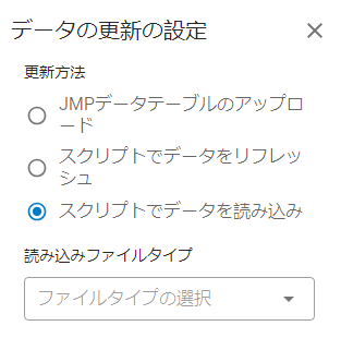 ヒント: ユーザがデータを読み込むためには、事前にデータ管理者が更新の方法を設定し、スクリプトを作成しなければなりません。詳細については、読み込みスクリプトの作成を参照してください。
