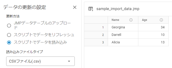 ユーザはJMPの形式ではないデータをJMP Liveにアップロードできます。アップロードしたデータは、JMPデータテーブルに変換されます。