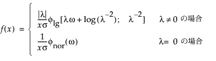 位置mu、尺度sigmaの対数正規分布のxにおける密度を戻す。確率密度関数は、次式のとおりです。