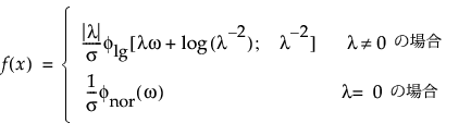 指数修正Gauss分布のxにおける密度を戻す。確率密度関数は、次式のとおりです。