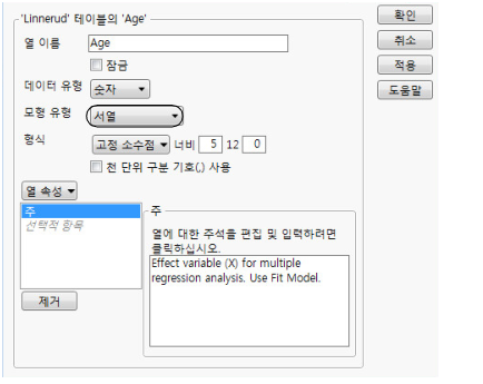 Age 열 머리글을 두 번 클릭합니다. 그러면 열 정보 창이 나타납니다.