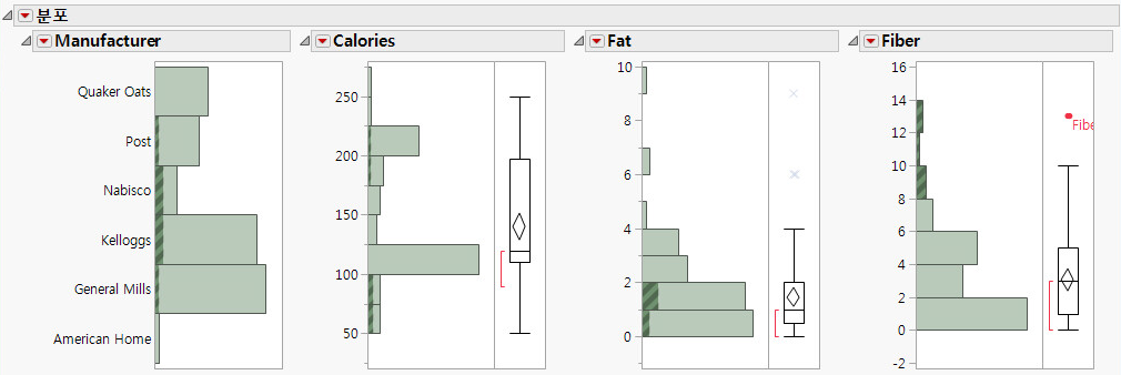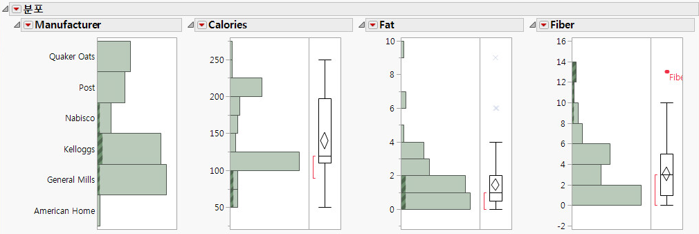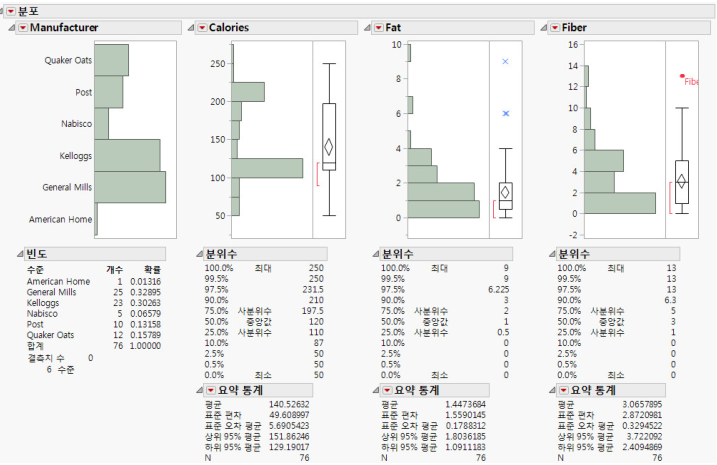 도움말 > 샘플 데이터 라이브러리를 선택하고 Cereal.jmp를 엽니다.