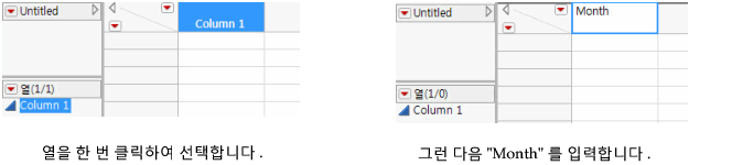 셀을 클릭하고 입력하는 방법으로 Month 정보를 입력합니다.