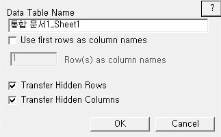 기본 데이터 테이블 이름(파일 이름_워크시트 이름)을 그대로 사용하거나 이름을 입력합니다.