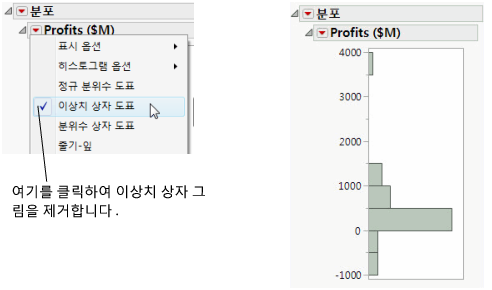 이상치 상자 그림을 선택 취소하여 이 옵션을 해제합니다.
