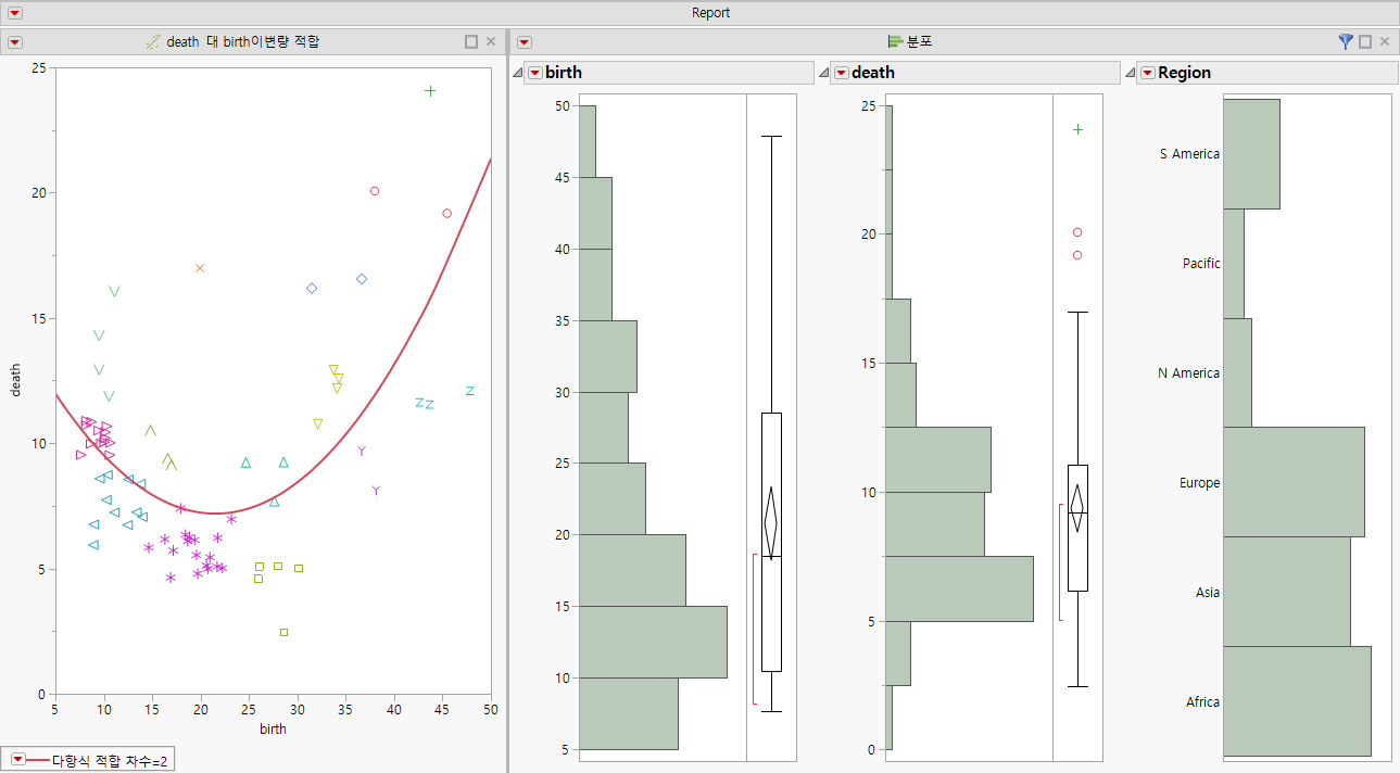 도움말 > 샘플 데이터 라이브러리를 선택하고 Birth Death.jmp를 엽니다.