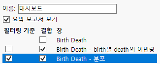 필터링 기준 열에서 Birth Death - 분포를 선택합니다.