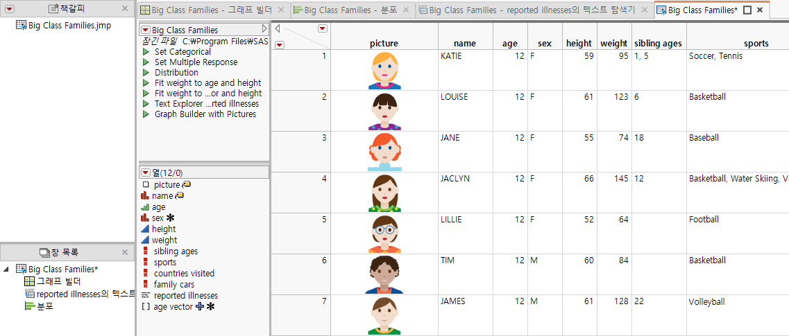 Big Class Families.jmp 옆의 체크박스를 선택합니다.