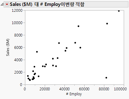 이 예에서는 제약 및 컴퓨터 업계의 32개 회사에 대한 재무 데이터가 포함된 Companies.jmp 샘플 데이터 테이블을 사용합니다.