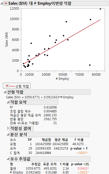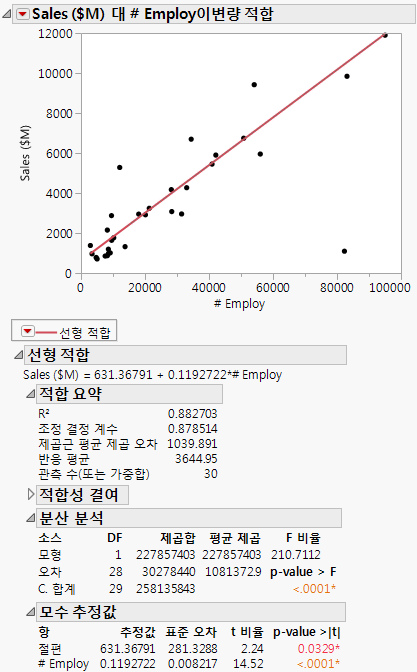 Sales ($M)를 선택하고 Y, 반응을 클릭합니다.