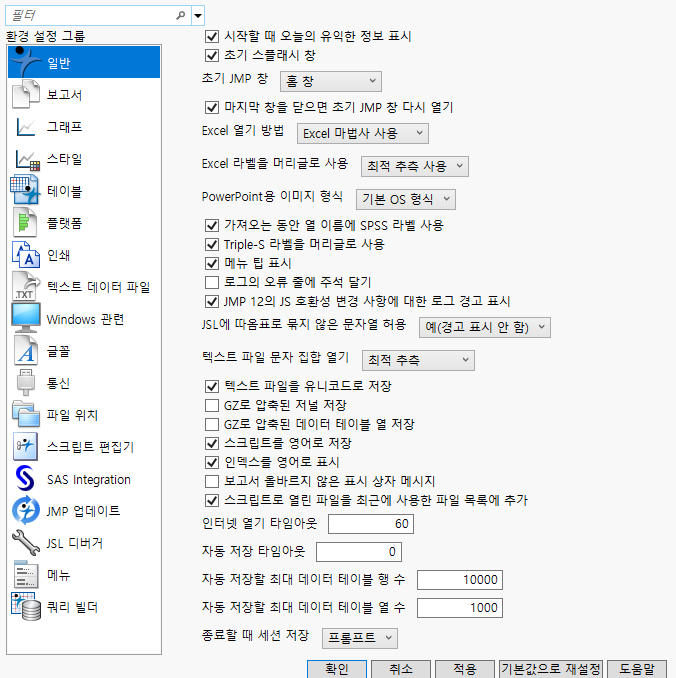 JMP > 환경 설정