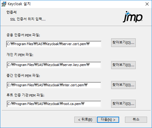조직의 SSL 인증서 위치를 지정합니다. 이러한 인증서는 권한 있는 공급자로부터 받아야 합니다.