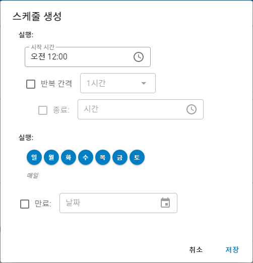 참고: 스케줄은 JMP Live 서버가 있는 표준 시간대를 기준으로 합니다.