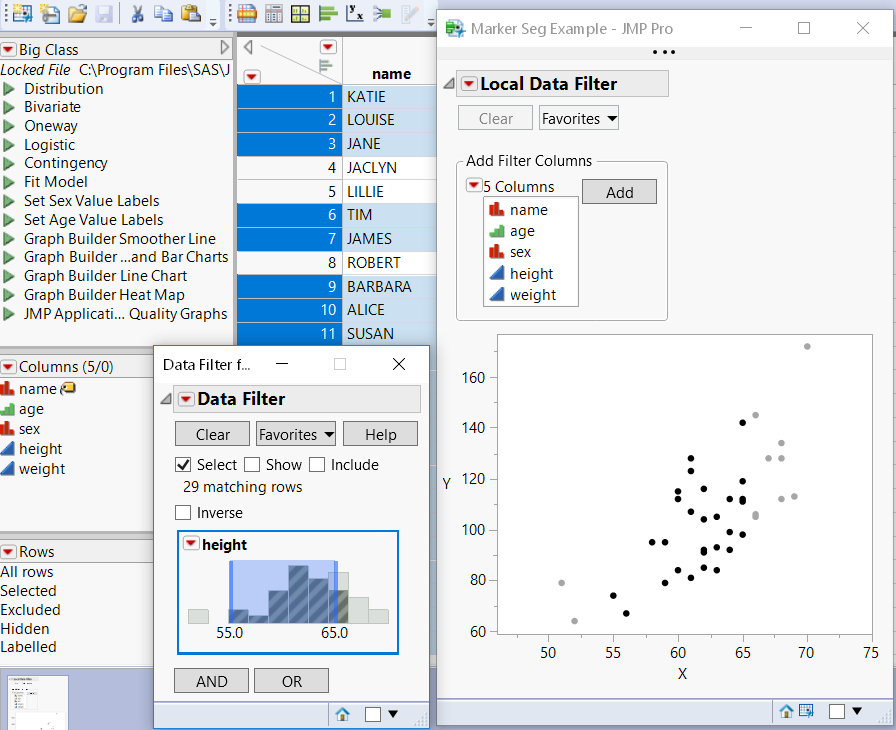 Tip: To experiment with this script, open the Local Data Filter Shared.jsl sample script.
