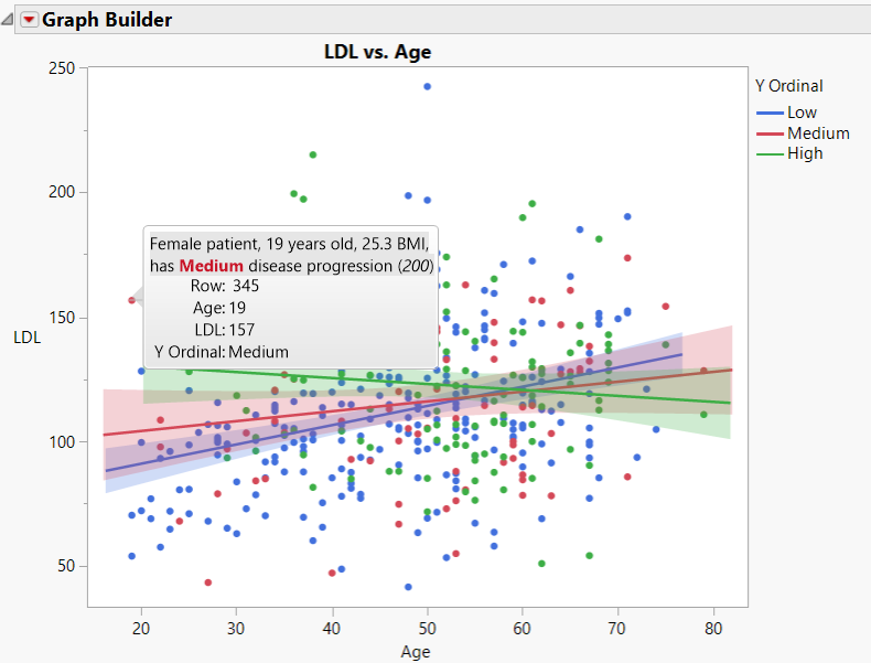 Show Control Panel( 0 ),Variables( X( :Age ), Y( :LDL ), Overlay( :Y Ordinal ) ),