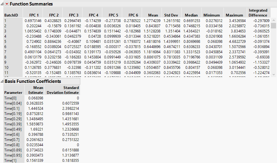 8. Click the Functional Data Explorer Group red triangle and select Models > B-Splines. This fits a B-spline model to each of the functional processes.