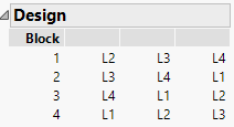 Use the Balanced Incomplete Block Platform to construct BIBDs. In addition, you can use the platform to construct complete block designs where each treatment occurs in every block.
