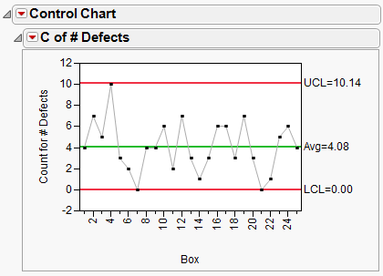 2. Select Analyze > Quality and Process > Legacy Control Charts > C.