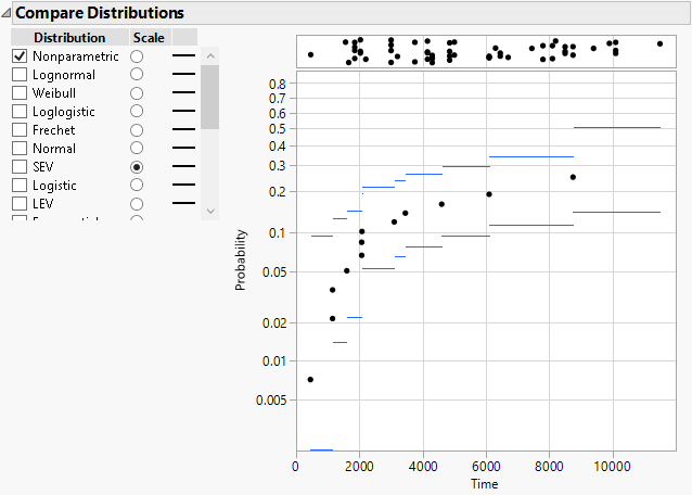 Figure 3.15 Nonparametric Estimates with a SEV Probability Scale