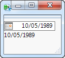 The following example shows how to create an interactive calendar using Number Edit Box(). The user enters a date in the box or clicks the calendar to select a date from the calendar. The number appears in a text box below the number edit box. “10/05/1989” is initially selected.