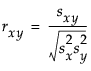 The Pearson correlation coefficient is denoted r, and is computed as follows: