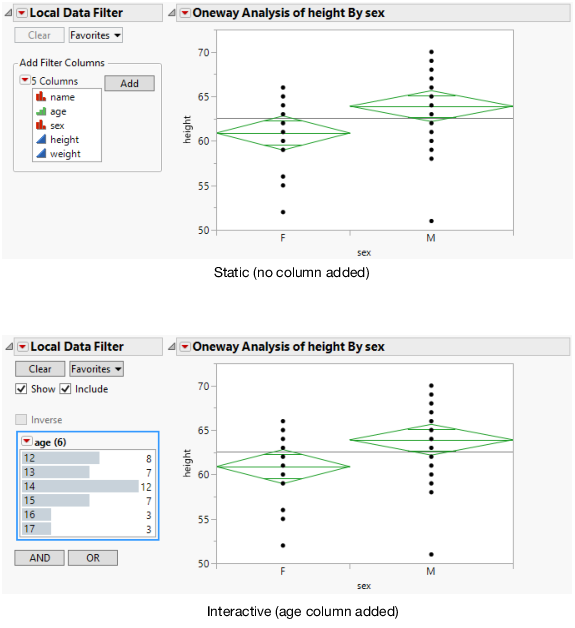 Figure 10.5 Static and Interactive Local Data Filters
